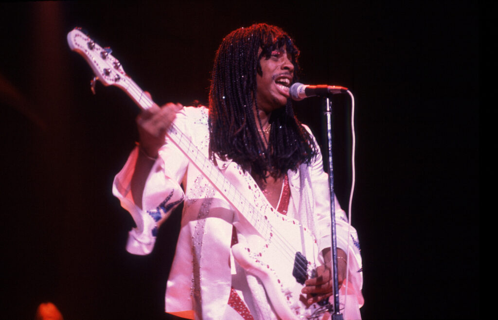 James Ambrose Johnson Jr., known as Rick James, leaned into a controversial artist image with hit songs like “Mary Jane” and his self-described “punk funk” style. “Super Freak” was a hit single from his 1981 platinum album Street Songs. The song has been covered by artists including the rock group Dave Matthews Band and the Dutch house group Beatfreakz. Rick James’ recording of “Super Freak” was sampled in 1990 by hip hop artist MC Hammer on his Grammy-winning single “U Can’t Touch This.” It has since been sampled by artists including Jay Z, Gucci Mane, Jeezy, 2 Chainz, and Big Daddy Kane. Nicki Minaj sampled the recording of “Super Freak” and interpolated the title in her 2022 song “Super Freaky Girl,” which has since been certified double platinum. In her music video, Minaj can be seen holding a bass guitar in homage to Rick James.